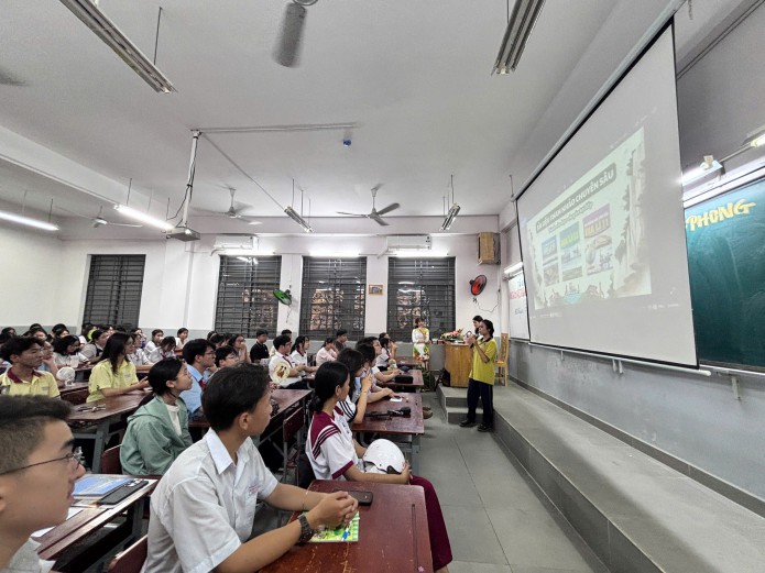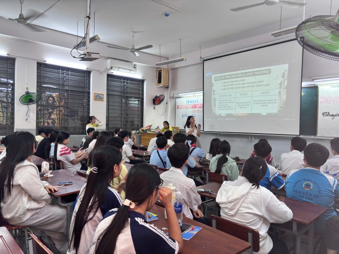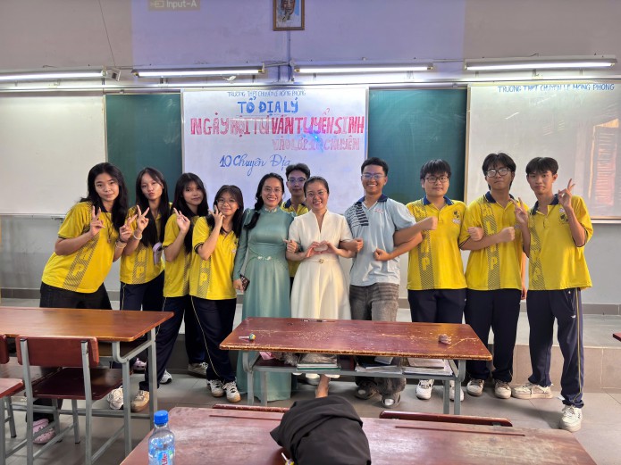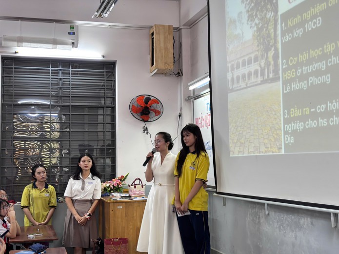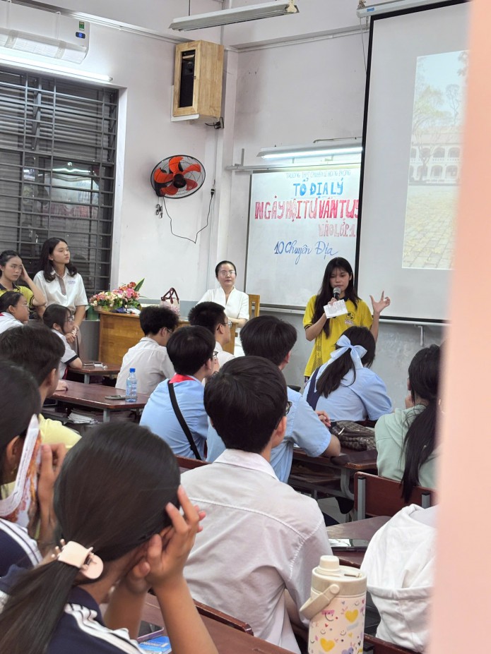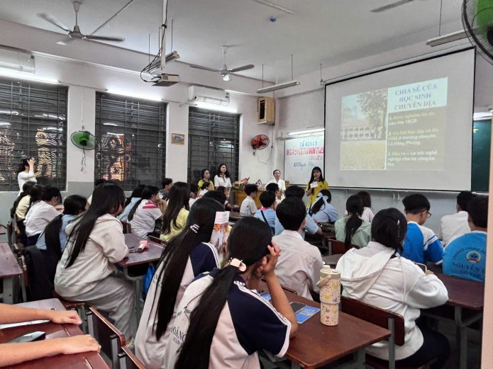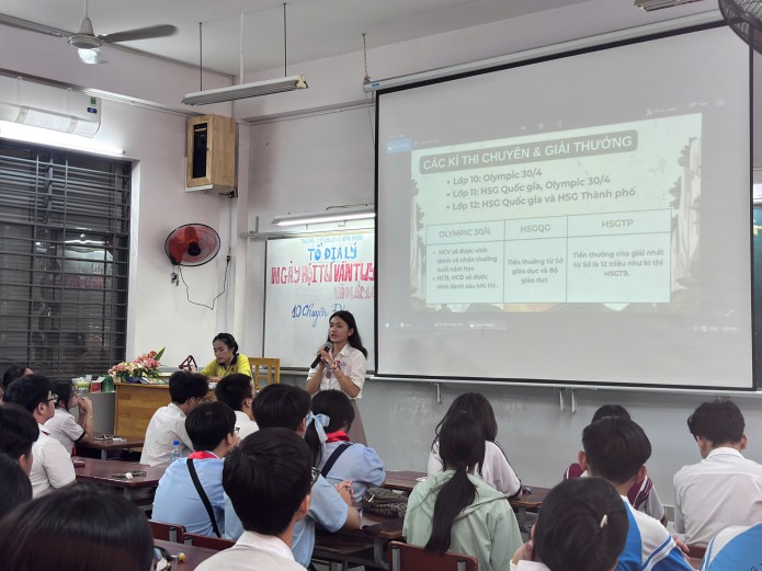 Bên cạnh đó, các em còn có cơ hội giao lưu trực tiếp với giáo viên và học sinh lớp chuyên Địa, tìm hiểu về môi trường học tập, hoạt động học thuật và định hướng phát triển trong tương lai.